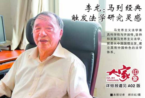 教授李龙一直致力于马克思主义法学中国化研究,主要研究领域为法理学、宪法学以及法学教育。年届八十的他告诉记者,自己最初受家庭影响走上了法学研究之路,但之后的际遇坎坷,让他有机会通读马列经典,并从中获得启发,为他的学术研究奠定了基调。
