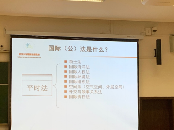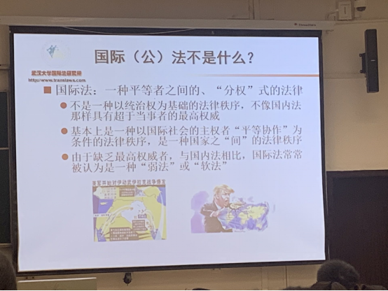 At the beginning of the lecture, Prof. Huang asked a question: what was public international law? He pointed out that international law was closely related to our daily life, for example, the international air activities had a close connection with the operation of the rules of international law.