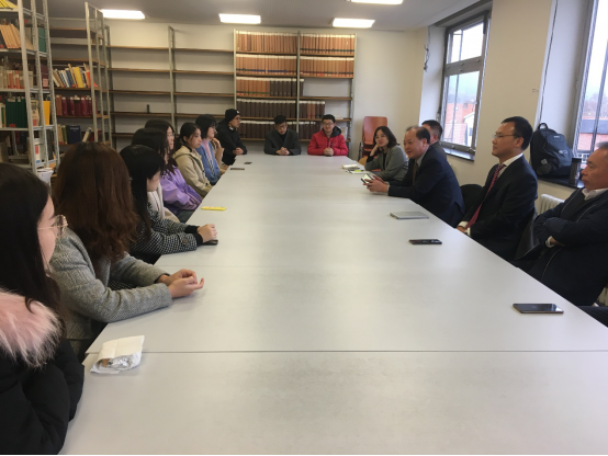 In the afternoon, the delegation met with 12 students studying in Marburg in Room 201of Savinyhaus, Philipps-Universität Marburg. They listened to their feelings about their study and life abroad, and answered their questions about the procedures for studying abroad, scholarship, and student service system, etc.