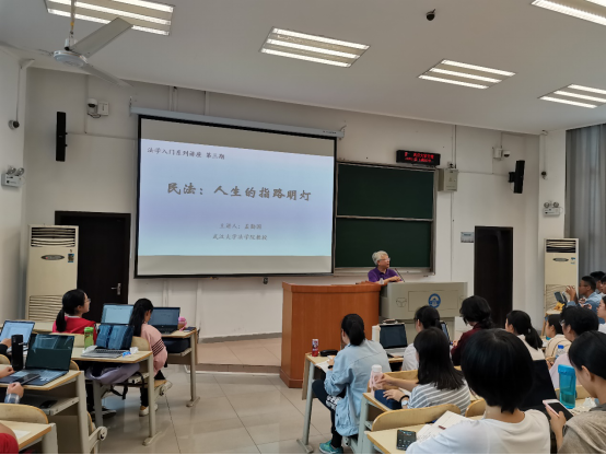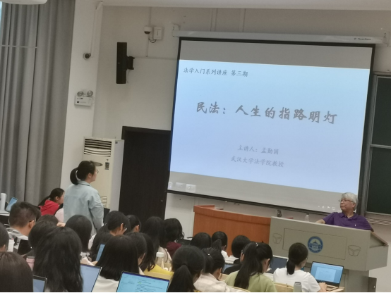 On October 11, 2019, the third session of the introductory lecture series on law was held in Room 201, the fourth teaching building of the Department of Arts and science. The theme of the lecture was "civil law: the guiding light of life". The main speaker was Professor Meng qinguo, the vice president of Civil Law Research Association of China Law Society and famous national teacher. All 2019 undergraduate students attended the lecture.
