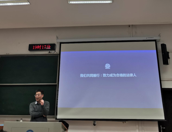 First of all, Prof. Feng explained "the extraordinary times and the extraordinary mission" for the students. He stressed that the world had not suffered such a change for a century. To have a command of the international situation, we needed to have a deep understanding of "change" and "situation". Changes have taken place in international geopolitics, economic contrast and value system, and the western centered world was gradually disintegrating. In the context, China called for a group of specialized law people who could walk freely on the international stage. At the same time, the technology and industrial revolution, the trend of social intelligence, informatization and ecology needed the development of law education. The establishment of a relatively perfect legal system needed the guidance of national policies and the efforts of talents of law.