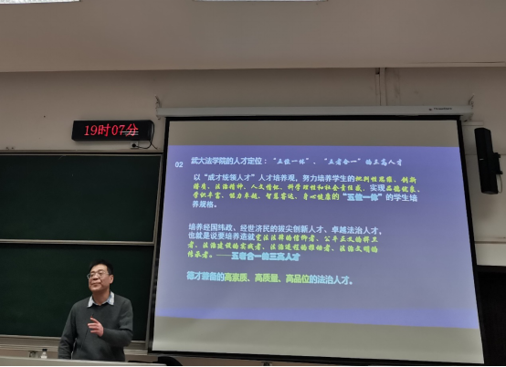 On December 23, the 14th session of the series of introductory lectures on law of Wuhan University hosted by the law school of Wuhan University was held in Room 103, teaching building 4, Ministry of Arts and Science. The theme of the lecture was " What Kind of Talents of Law are Needed in the New Era ". The lecturer was professor Feng Guo. All 2019 undergraduate students from Wuhan University Law School attended the lecture.
