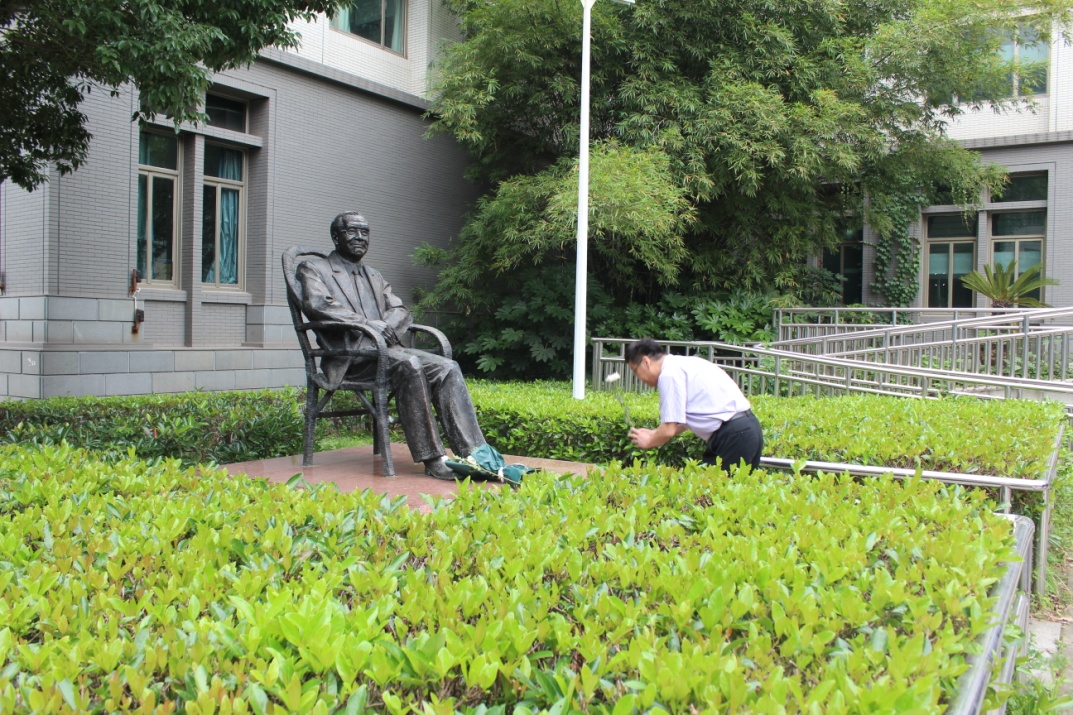 Dean Feng Guo presented flowers to the bronze statue of Professor Han