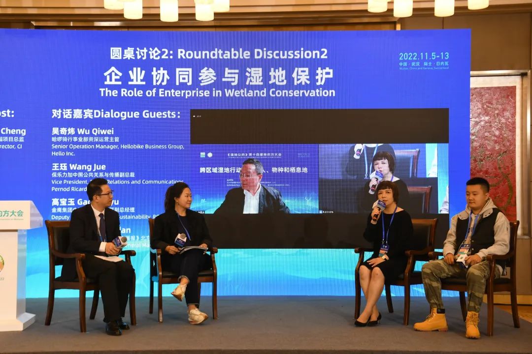 In the second session of the roundtable discussion, representatives from various companies discussed the theme of "the role of enterprise in wetland conservation". This session was moderated by Zhang Cheng, China Program Director of CI.