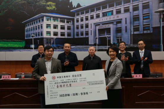 The donation ceremony was finally held. Lawyer Yu Ping, a partner of Grandall (Shenzhen) Law Firm, handed over the check of RMB 1 million which was donated by Guohao (Shenzhen) Law Firm to the foundation to Mr.Zhang Qinglin, the secretary general of the foundation.
