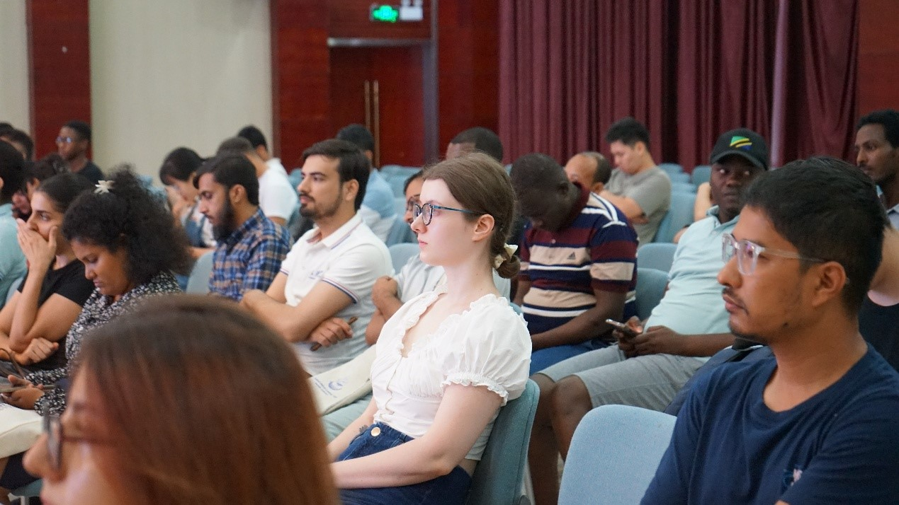 Officer Liu Xinyang of the Exit-Entry Administration Bureau of the Wuhan Municipal Public Security Bureau gave a lecture on laws and regulations. Officer Liu introduced the Law of the People's Republic of China on the Control of Exit and Entry and related laws and regulations to international students using videos and case studies, reminding them to abide by Chinese laws and regulations, be wary of illegal residence and employment, and watch out for scams.