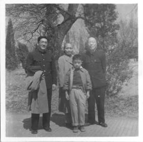▲1960年周鲠生夫妇与二女婿周镜院士在北京香山