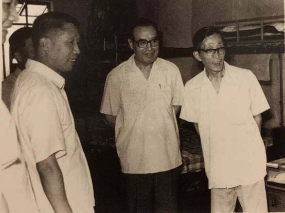 ▲1982年韩德培先生、马克昌先生、何华辉先生(右一)参观武汉市司法局的监狱改造农场